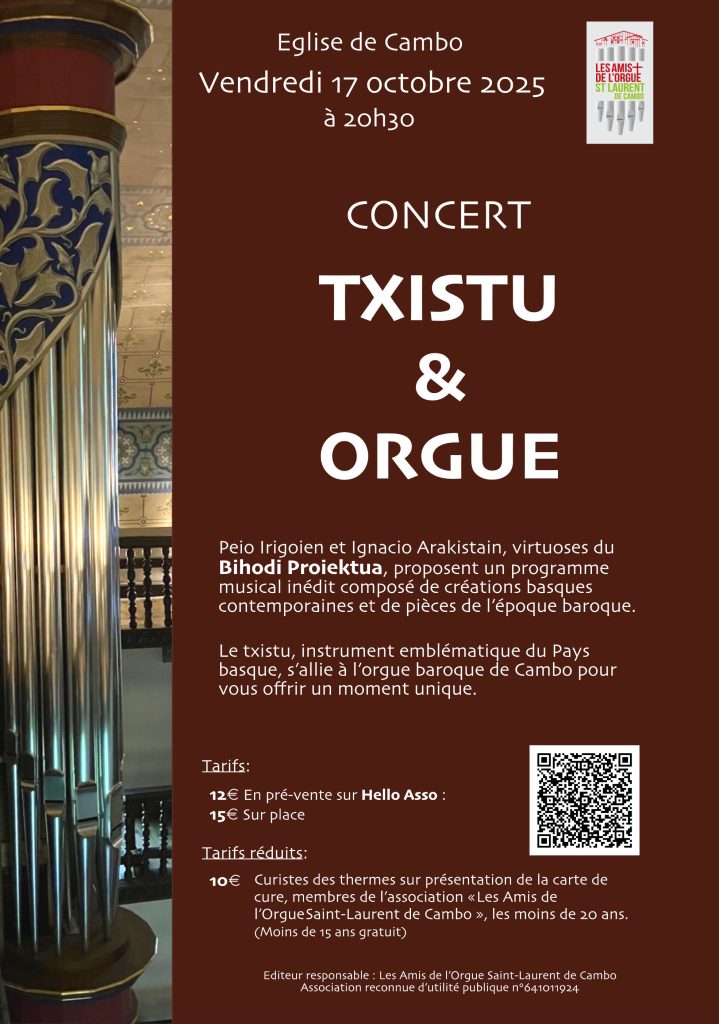C’est un son bien connu au Pays basque que celui du txistu qui accompagnera l’exceptionnel orgue baroque de Cambo inauguré voici 18 mois.