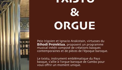 Le vendredi 17 octobre à 20 h30 à l’église de Cambo, BIHODI PROIEKTUA, le duo Guipuscoan Peio Irigoien (Txistu) et Ignacio Arakistain (orgue) propose un programme musical mêlant créations basques contemporaines et pièces de l'époque baroque